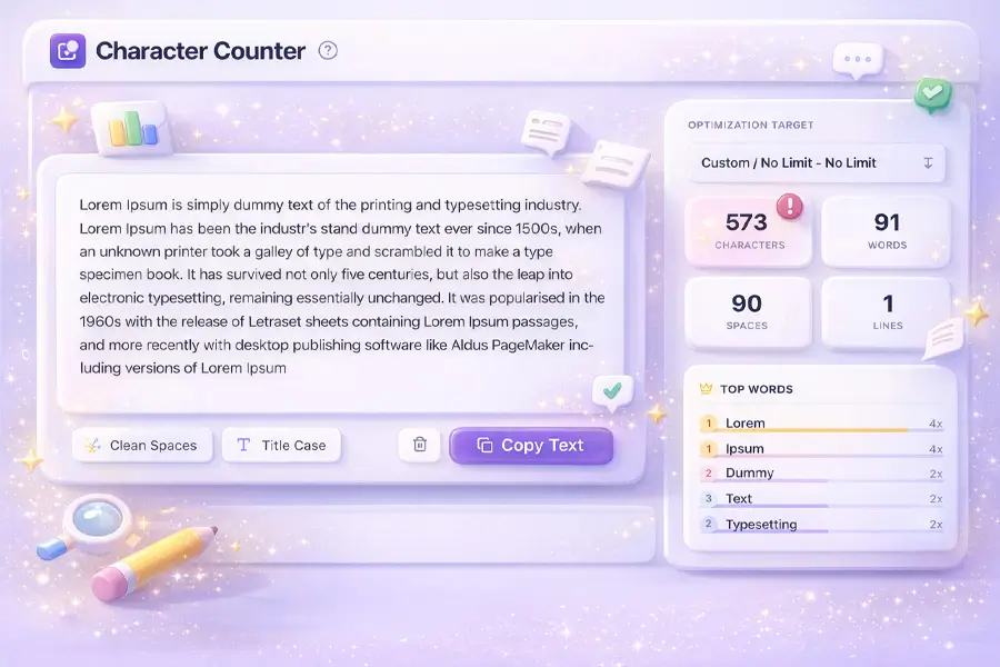 Count characters and words accurately for ads, posts, SMS messages, and listings. Includes platform-friendly limits so your text never gets cut off.